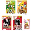 - 緑黄野菜ふりかけ45g・小魚ふりかけ45g・男梅ふりかけ35g・男梅混ぜご飯23g・ふりふりあられ17g